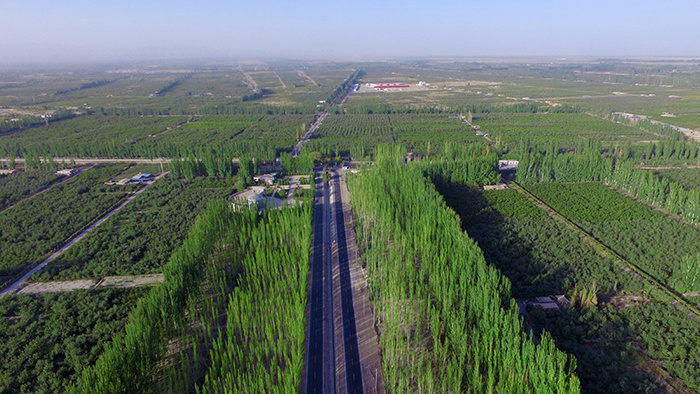 濒临塔克拉玛干沙漠带来的风沙危害,防沙治沙职责提上了日程。自1978年国度启动“三北”留意林工程后,地区积极争取神色资金复旧,启动实行了“三北”留意林工程,防沙治沙职责就此拉开序幕。
