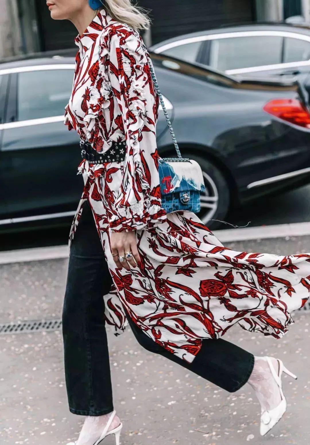 既帅气娴雅又充满纵脱气味的采用。印花裙以其特有的图案和色调,为全体造型增添了丰富的视觉脉络,让东谈主每走一步齐恬逸耽溺东谈主的魔力。