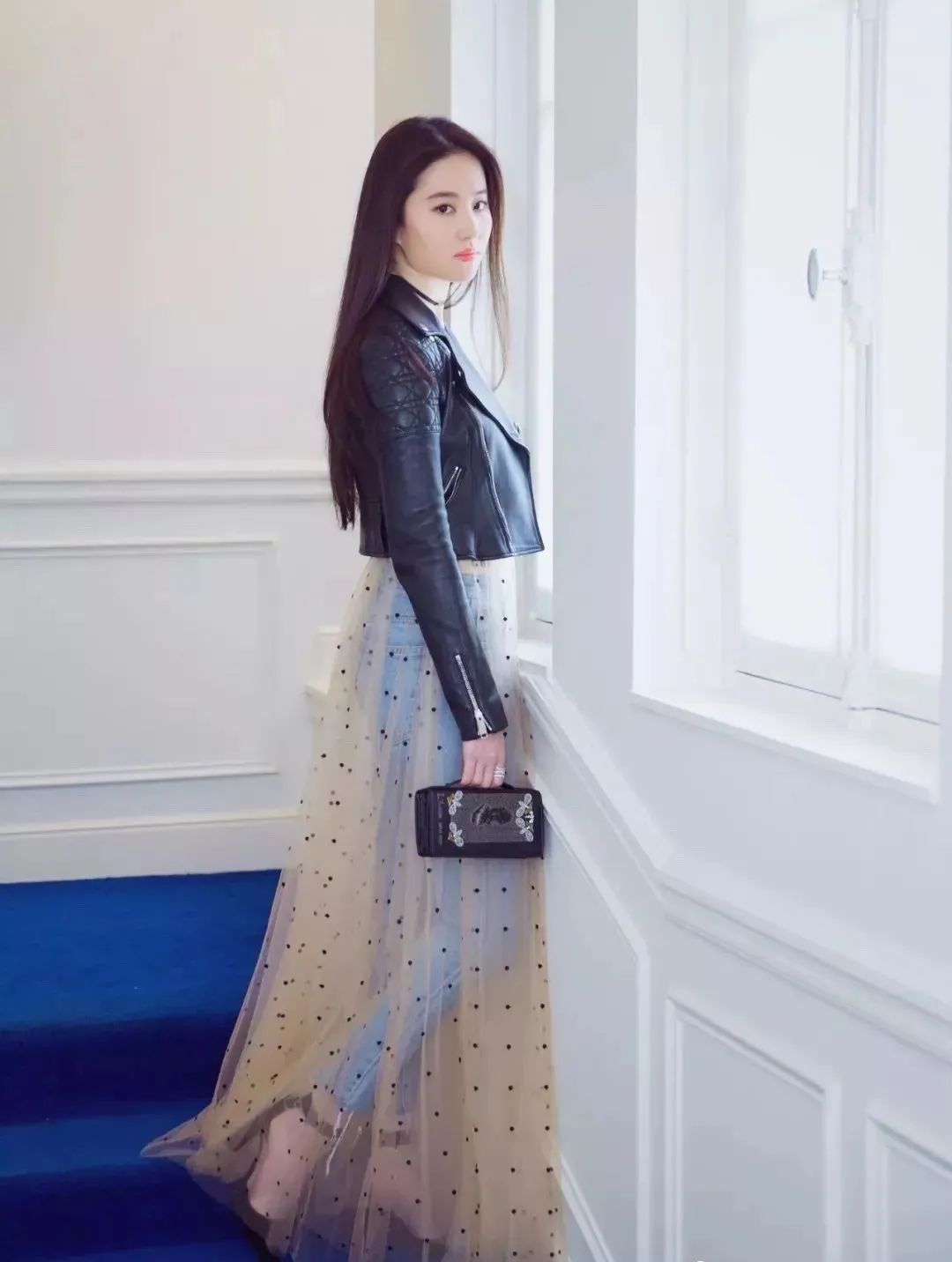 不仅突显了女性的优雅气质,还展现了一种随心的前卫立场,让东谈主目下一亮。