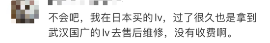 对此,有网友暗示“还好买不起,光售后用度齐爱重”“为什么双标?”也有耗尽者暗示“我方在国外买的LV在国内维修莫得收费。”