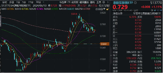 重仓港股互联网龙头的港股互联网ETF(513770)高开高走,全天红盘触动,场内价钱收涨1.11%,成交额2.81亿元,较前一日放量超30%。
