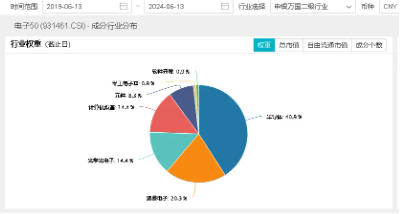 值得介怀的是,摈弃6月13日,按照申万二级行业口径,电子ETF(515260)追踪的电子50指数中,半导体行业(权重占比40.9%)和耗费电子行业(权重占比20.3%)是前两大重仓行业,共计占比超60%,是一键布局半导体芯片和苹果产业链的高后果投资器用!